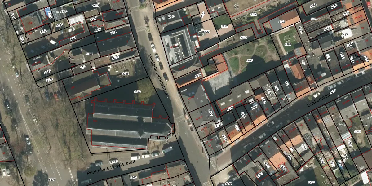 Het perceel waarop Minderbroedersstraat 9-D staat heeft een oppervlakte van 957 m². Dit is een groot perceel. De perceeloppervlakte wordt geregistreerd door het Kadaster. Gedetailleerde informatie over de maten van dit perceel kunt u vinden in het rapport Kadastrale kaart met maatvoering van Minderbroedersstraat 9-D.