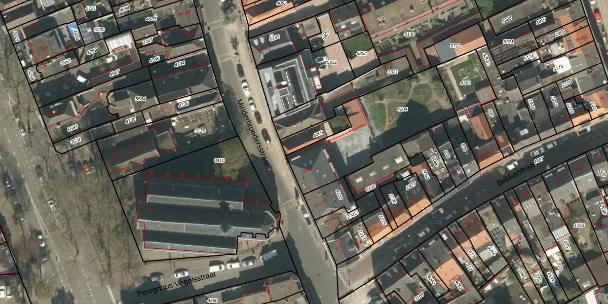 Het perceel waarop Minderbroedersstraat 9-E staat heeft een oppervlakte van 957 m². Dit is een groot perceel. De perceeloppervlakte wordt geregistreerd door het Kadaster. Gedetailleerde informatie over de maten van dit perceel kunt u vinden in het rapport Kadastrale kaart met maatvoering van Minderbroedersstraat 9-E.