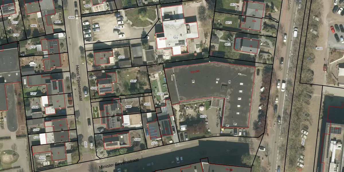 Minister Beversstraat 15 is gelegen op kadastraal perceel RMD00B6076. Deze kadastrale aanduiding is uniek en wordt gebruikt door het Kadaster om eigendomsrechten en andere zakelijke rechten vast te leggen. Het perceel maakt onderdeel uit van de kadastrale gemeente Roermond.