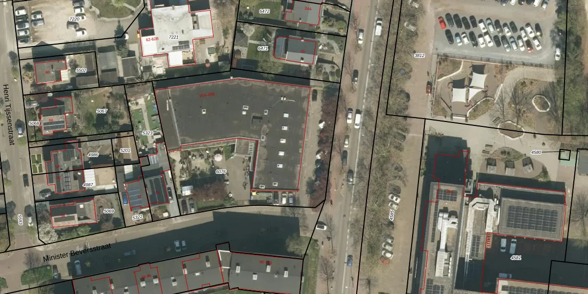 Minister Beversstraat 25 is gelegen op kadastraal perceel RMD00B6076. Deze kadastrale aanduiding is uniek en wordt gebruikt door het Kadaster om eigendomsrechten en andere zakelijke rechten vast te leggen. Het perceel maakt onderdeel uit van de kadastrale gemeente Roermond.
