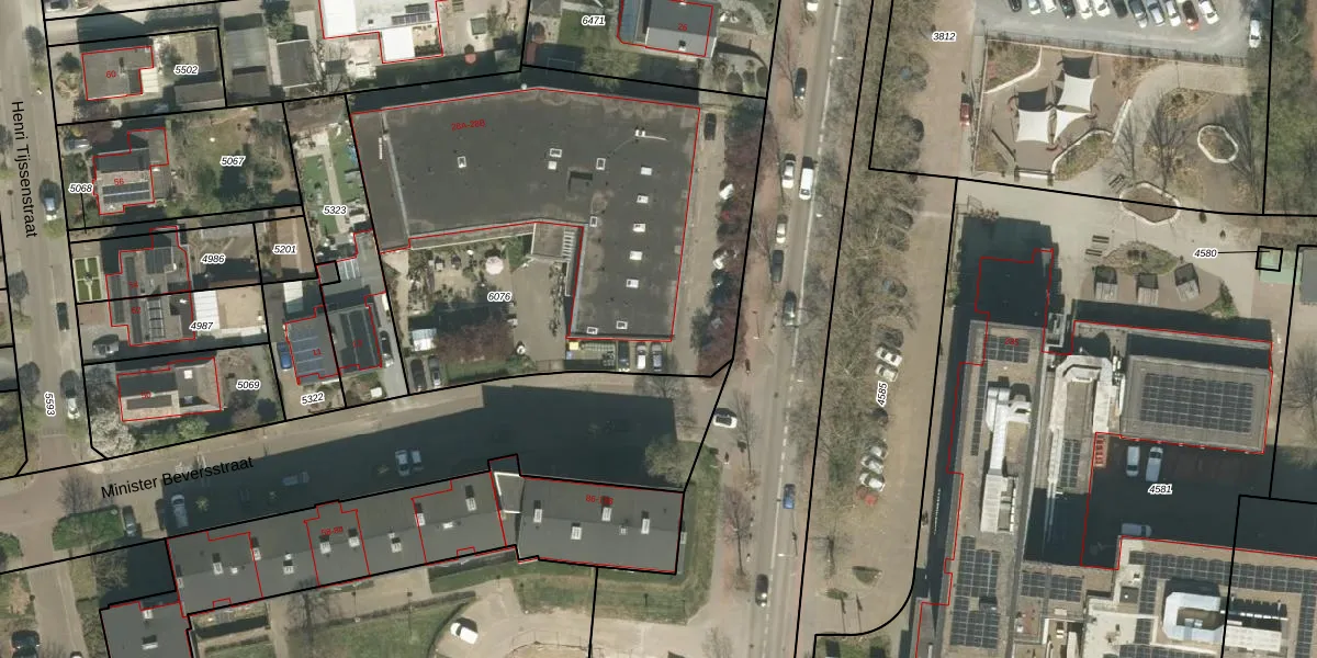 Minister Beversstraat 29 is gelegen op kadastraal perceel RMD00B6076. Deze kadastrale aanduiding is uniek en wordt gebruikt door het Kadaster om eigendomsrechten en andere zakelijke rechten vast te leggen. Het perceel maakt onderdeel uit van de kadastrale gemeente Roermond.