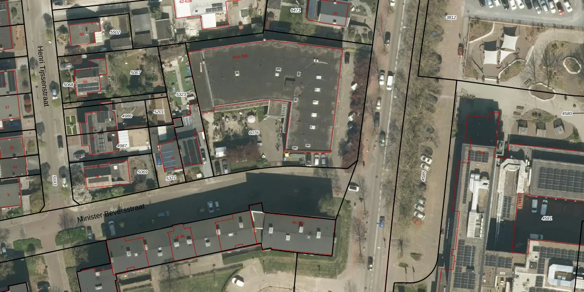 Minister Beversstraat 31 is gelegen op kadastraal perceel RMD00B6076. Deze kadastrale aanduiding is uniek en wordt gebruikt door het Kadaster om eigendomsrechten en andere zakelijke rechten vast te leggen. Het perceel maakt onderdeel uit van de kadastrale gemeente Roermond.