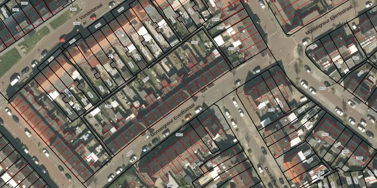 Het perceel waarop Monseigneur Evertsstraat 21 staat heeft een oppervlakte van 2049 m². Dit is een zeer groot perceel. De perceeloppervlakte wordt geregistreerd door het Kadaster. Gedetailleerde informatie over de maten van dit perceel kunt u vinden in het rapport Kadastrale kaart met maatvoering van Monseigneur Evertsstraat 21.