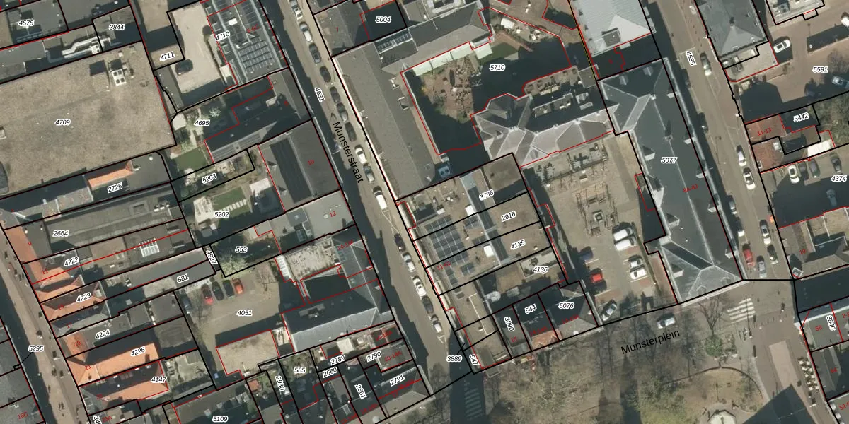 Munsterstraat 27 is gelegen op kadastraal perceel RMD00D3786. Deze kadastrale aanduiding is uniek en wordt gebruikt door het Kadaster om eigendomsrechten en andere zakelijke rechten vast te leggen. Het perceel maakt onderdeel uit van de kadastrale gemeente Roermond.