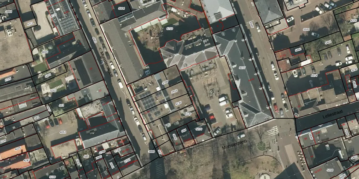 Het perceel waarop Munsterstraat 39 staat heeft een oppervlakte van 211 m². Dit is een middelgroot perceel. De perceeloppervlakte wordt geregistreerd door het Kadaster. Gedetailleerde informatie over de maten van dit perceel kunt u vinden in het rapport Kadastrale kaart met maatvoering van Munsterstraat 39.