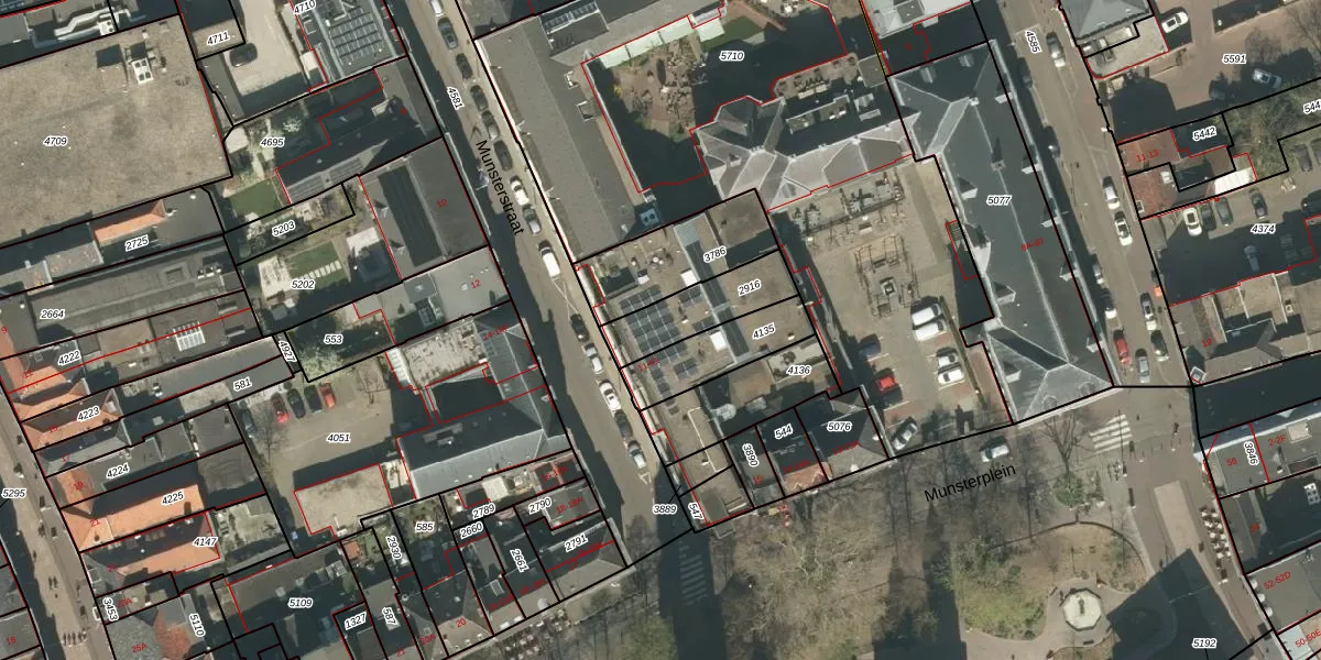 Het perceel waarop Munsterstraat 45 staat heeft een oppervlakte van 211 m². Dit is een middelgroot perceel. De perceeloppervlakte wordt geregistreerd door het Kadaster. Gedetailleerde informatie over de maten van dit perceel kunt u vinden in het rapport Kadastrale kaart met maatvoering van Munsterstraat 45.