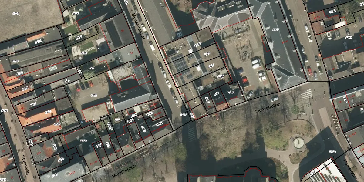 Munsterstraat 61 is gelegen op kadastraal perceel RMD00D4136. Deze kadastrale aanduiding is uniek en wordt gebruikt door het Kadaster om eigendomsrechten en andere zakelijke rechten vast te leggen. Het perceel maakt onderdeel uit van de kadastrale gemeente Roermond.