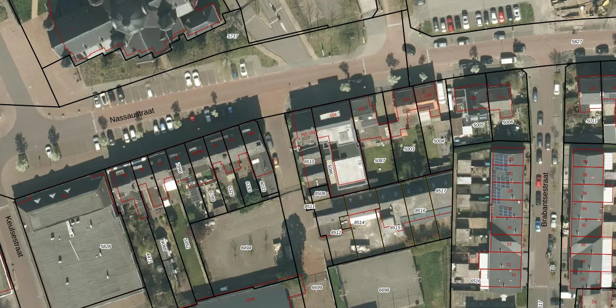 Nassaustraat 102-E is gelegen op kadastraal perceel RMD00B8510. Deze kadastrale aanduiding is uniek en wordt gebruikt door het Kadaster om eigendomsrechten en andere zakelijke rechten vast te leggen. Het perceel maakt onderdeel uit van de kadastrale gemeente Roermond.