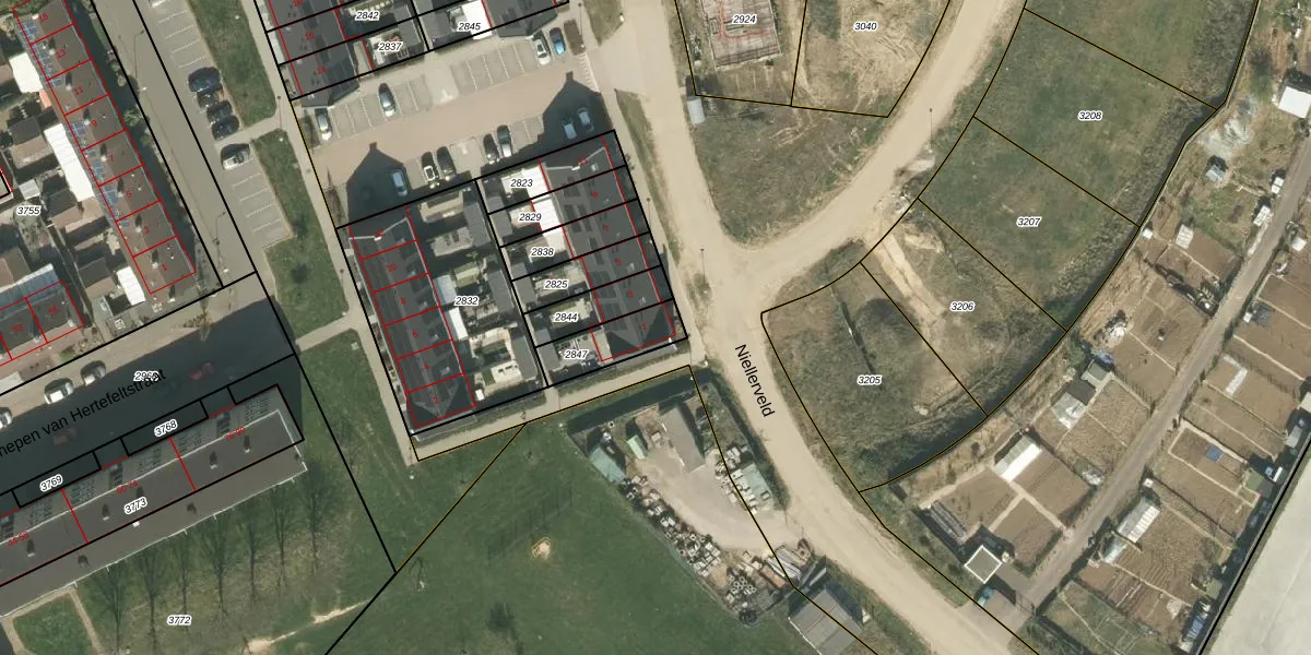 Niellerveld 1 is gelegen op kadastraal perceel RMD00H2847. Deze kadastrale aanduiding is uniek en wordt gebruikt door het Kadaster om eigendomsrechten en andere zakelijke rechten vast te leggen. Het perceel maakt onderdeel uit van de kadastrale gemeente Roermond.