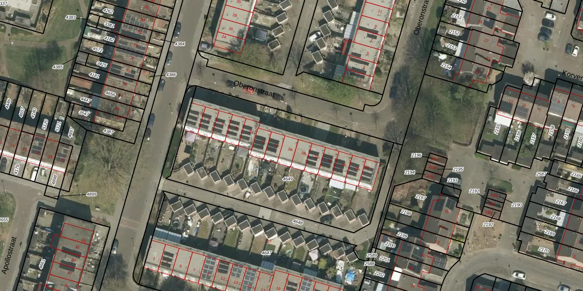 Oberonstraat 16 is gelegen op kadastraal perceel RMD00F4649. Deze kadastrale aanduiding is uniek en wordt gebruikt door het Kadaster om eigendomsrechten en andere zakelijke rechten vast te leggen. Het perceel maakt onderdeel uit van de kadastrale gemeente Roermond.