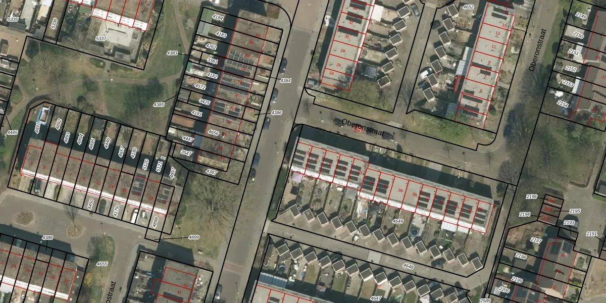 Het perceel waarop Oberonstraat 2 staat heeft een oppervlakte van 2365 m². Dit is een zeer groot perceel. De perceeloppervlakte wordt geregistreerd door het Kadaster. Gedetailleerde informatie over de maten van dit perceel kunt u vinden in het rapport Kadastrale kaart met maatvoering van Oberonstraat 2.