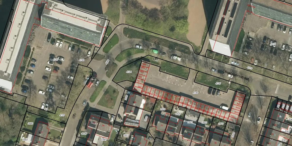 Olieslagersstraat 38-5 is gelegen op kadastraal perceel RMD00F4736. Deze kadastrale aanduiding is uniek en wordt gebruikt door het Kadaster om eigendomsrechten en andere zakelijke rechten vast te leggen. Het perceel maakt onderdeel uit van de kadastrale gemeente Roermond.