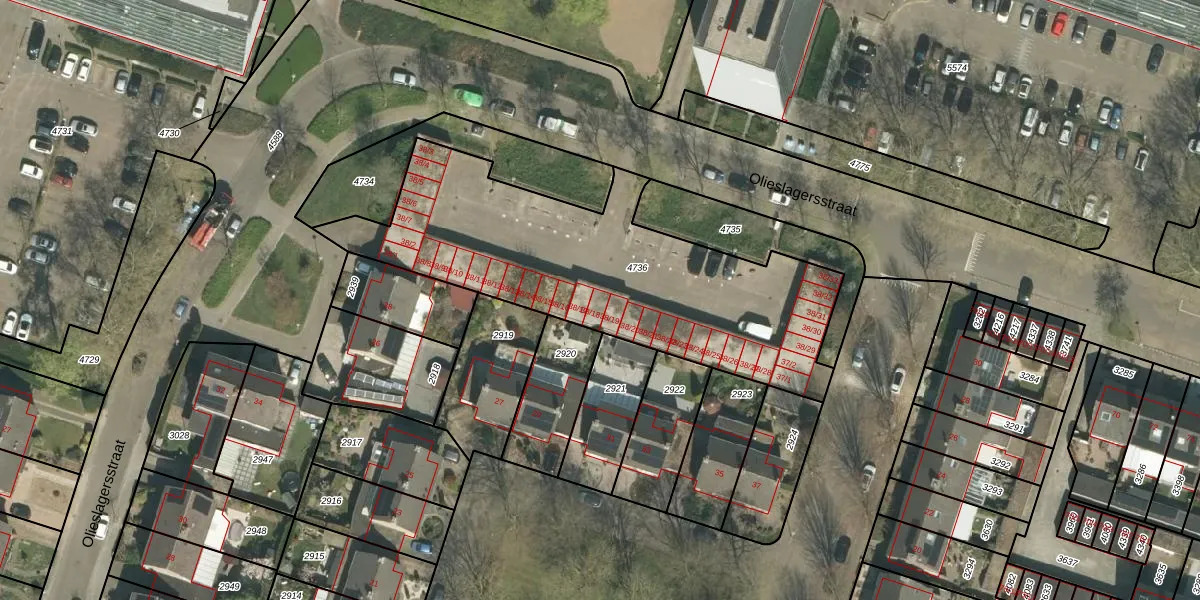 Olieslagersstraat 38-18 is gelegen op kadastraal perceel RMD00F4736. Deze kadastrale aanduiding is uniek en wordt gebruikt door het Kadaster om eigendomsrechten en andere zakelijke rechten vast te leggen. Het perceel maakt onderdeel uit van de kadastrale gemeente Roermond.