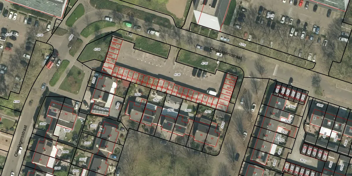 Olieslagersstraat 38-20 is gelegen op kadastraal perceel RMD00F4736. Deze kadastrale aanduiding is uniek en wordt gebruikt door het Kadaster om eigendomsrechten en andere zakelijke rechten vast te leggen. Het perceel maakt onderdeel uit van de kadastrale gemeente Roermond.