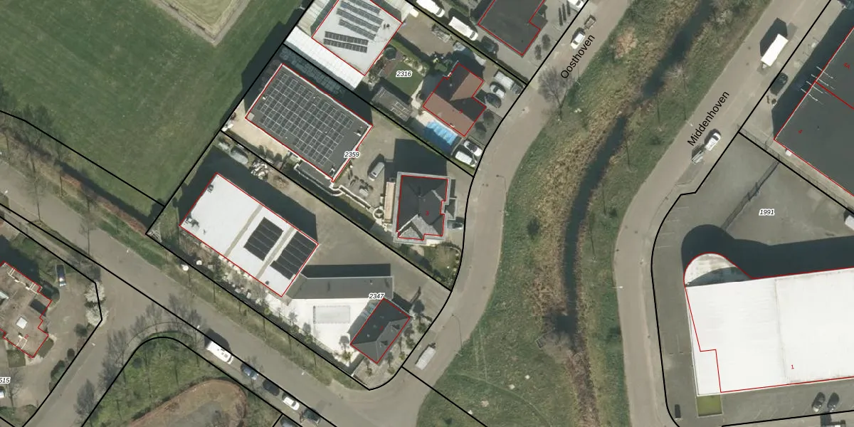 Het perceel waarop Oosthoven 3 staat heeft een oppervlakte van 1515 m². Dit is een zeer groot perceel. De perceeloppervlakte wordt geregistreerd door het Kadaster. Gedetailleerde informatie over de maten van dit perceel kunt u vinden in het rapport Kadastrale kaart met maatvoering van Oosthoven 3.