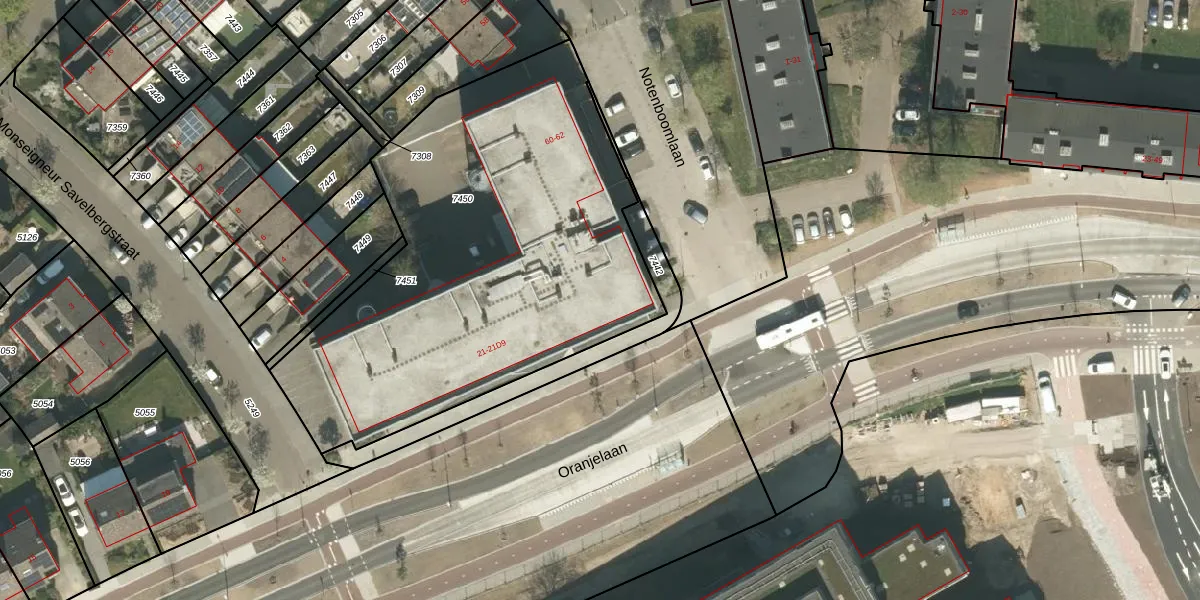 Oranjelaan 21-B-6 is gelegen op kadastraal perceel RMD00B7450. Deze kadastrale aanduiding is uniek en wordt gebruikt door het Kadaster om eigendomsrechten en andere zakelijke rechten vast te leggen. Het perceel maakt onderdeel uit van de kadastrale gemeente Roermond.