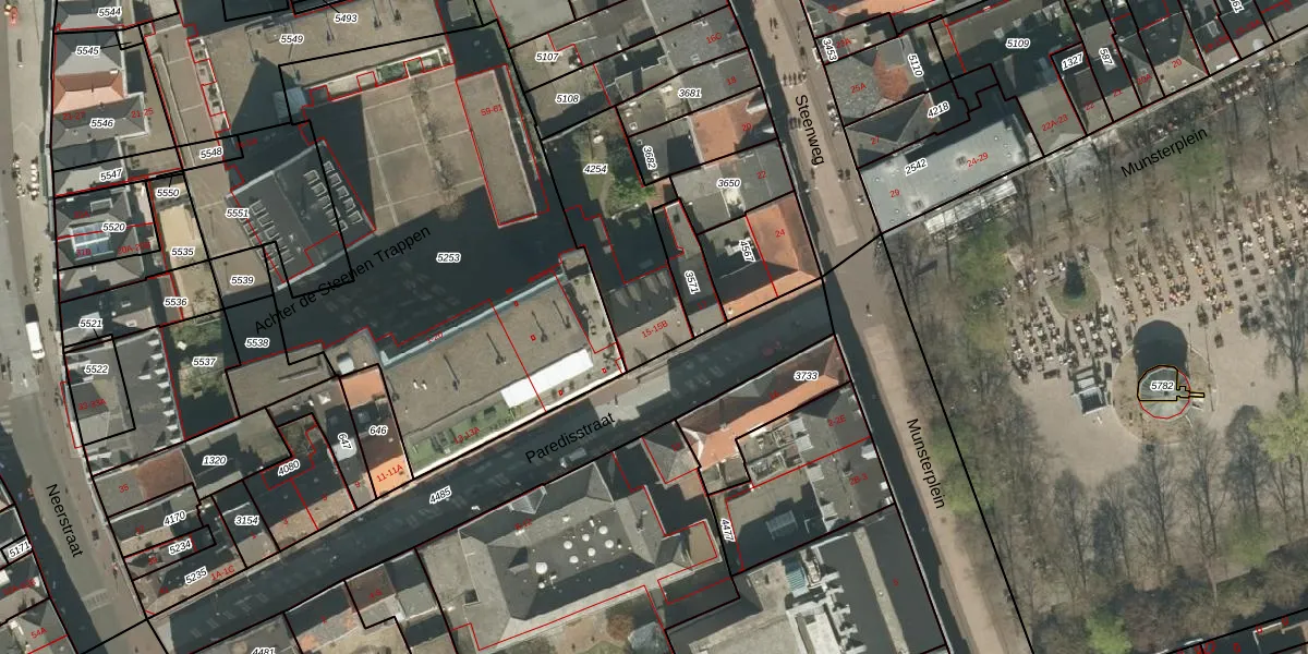 Het perceel waarop Paredisstraat 15-A staat heeft een oppervlakte van 471 m². Dit is een groot perceel. De perceeloppervlakte wordt geregistreerd door het Kadaster. Gedetailleerde informatie over de maten van dit perceel kunt u vinden in het rapport Kadastrale kaart met maatvoering van Paredisstraat 15-A.