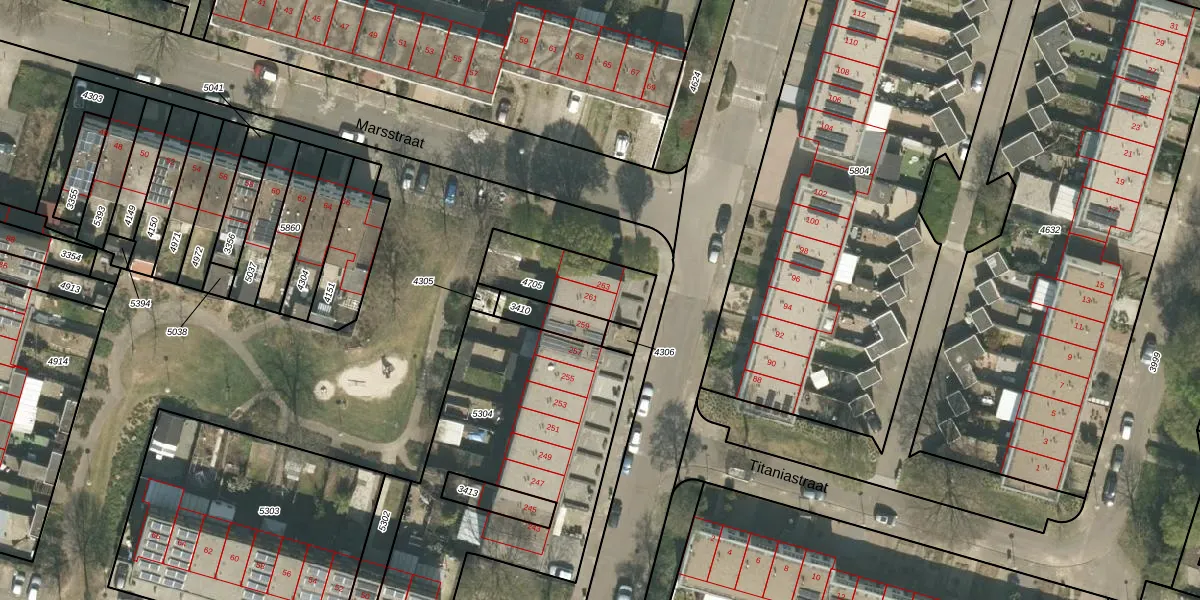 Plutolaan 261 is gelegen op kadastraal perceel RMD00F4705. Deze kadastrale aanduiding is uniek en wordt gebruikt door het Kadaster om eigendomsrechten en andere zakelijke rechten vast te leggen. Het perceel maakt onderdeel uit van de kadastrale gemeente Roermond.
