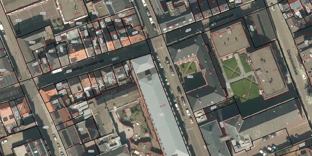 Pollartstraat 56 is gelegen op kadastraal perceel RMD00D5711. Deze kadastrale aanduiding is uniek en wordt gebruikt door het Kadaster om eigendomsrechten en andere zakelijke rechten vast te leggen. Het perceel maakt onderdeel uit van de kadastrale gemeente Roermond.
