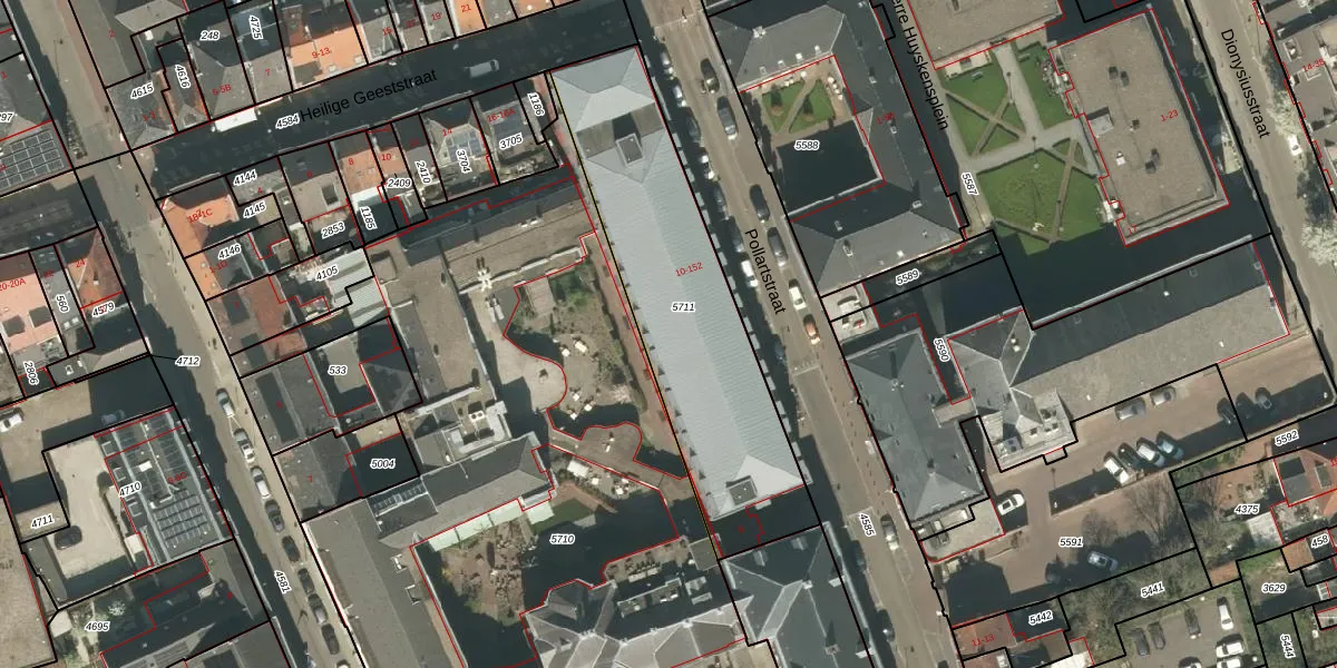 Pollartstraat 96 is gelegen op kadastraal perceel RMD00D5711. Deze kadastrale aanduiding is uniek en wordt gebruikt door het Kadaster om eigendomsrechten en andere zakelijke rechten vast te leggen. Het perceel maakt onderdeel uit van de kadastrale gemeente Roermond.