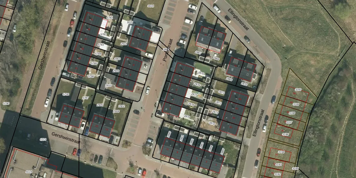 Gebruik de zoekbalk of klik op een perceel voor informatie over de adressen binnen dit perceel.