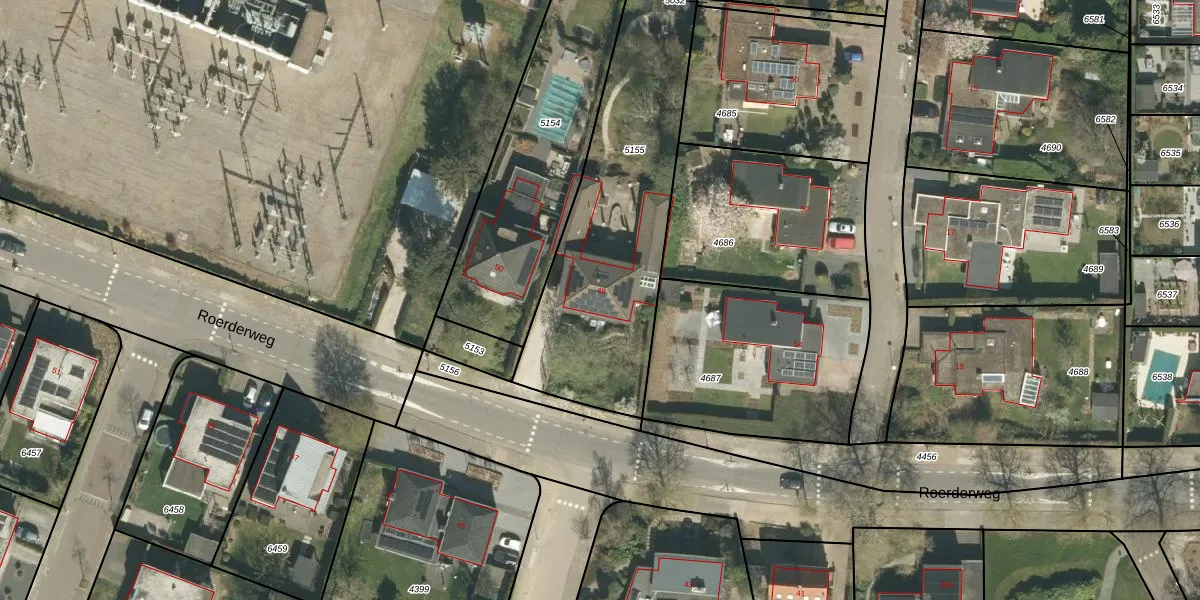 Roerderweg 48 is gelegen op kadastraal perceel RMD00C5155. Deze kadastrale aanduiding is uniek en wordt gebruikt door het Kadaster om eigendomsrechten en andere zakelijke rechten vast te leggen. Het perceel maakt onderdeel uit van de kadastrale gemeente Roermond.