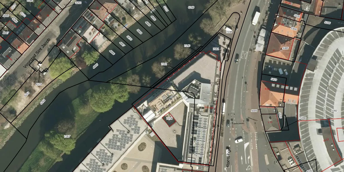 Het perceel waarop Roersingel 140 staat heeft een oppervlakte van 1260 m². Dit is een zeer groot perceel. De perceeloppervlakte wordt geregistreerd door het Kadaster. Gedetailleerde informatie over de maten van dit perceel kunt u vinden in het rapport Kadastrale kaart met maatvoering van Roersingel 140.