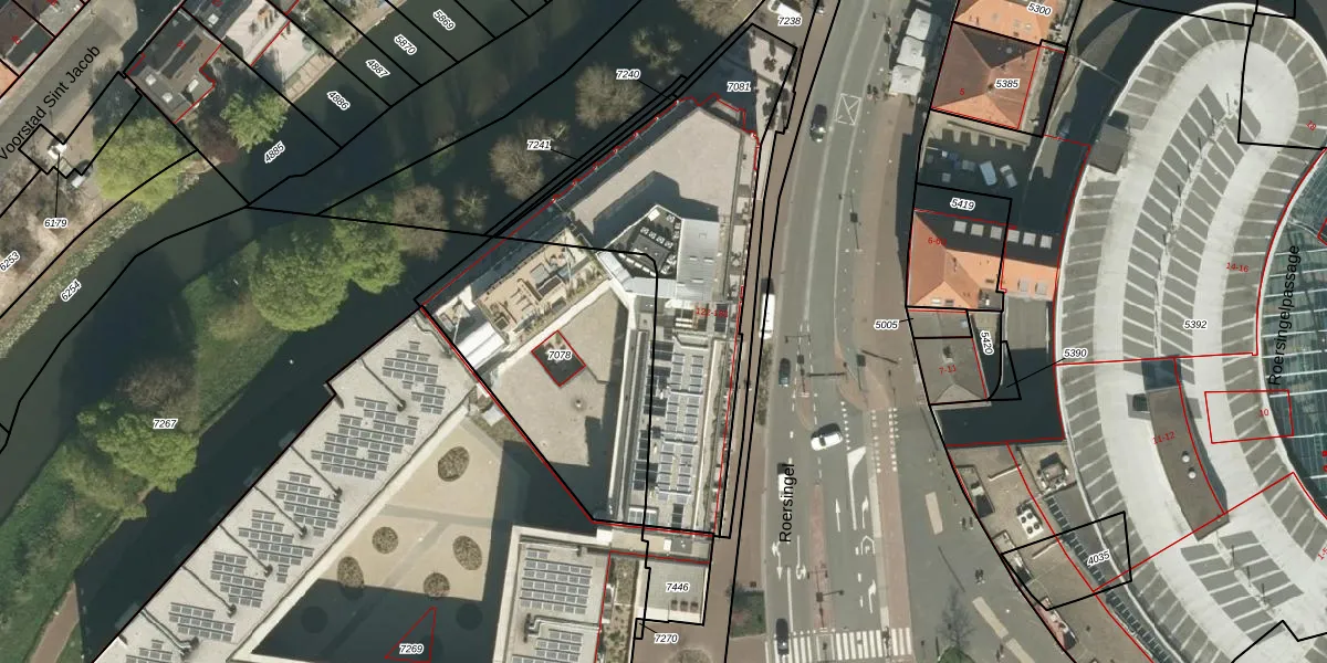 Het adres ligt op het perceel RMD00-C-7081, dat zich in de kadastrale gemeente Roermond bevindt. Het perceel is 1260 m² groot. Dat is kleiner dan de gemiddelde perceeloppervlakte in Roermond, dat op 2210,91 m² ligt. Het kleinste perceel in de kadastrale gemeente is 0 m² groot. De grootste perceeloppervlakte is 69,4 ha. Op het perceel liggen in totaal 15 adressen. De huidige grenzen van het perceel zijn digitaal in de Basisregistratie Kadaster (BRK) geregistreerd op 21-12-2021.