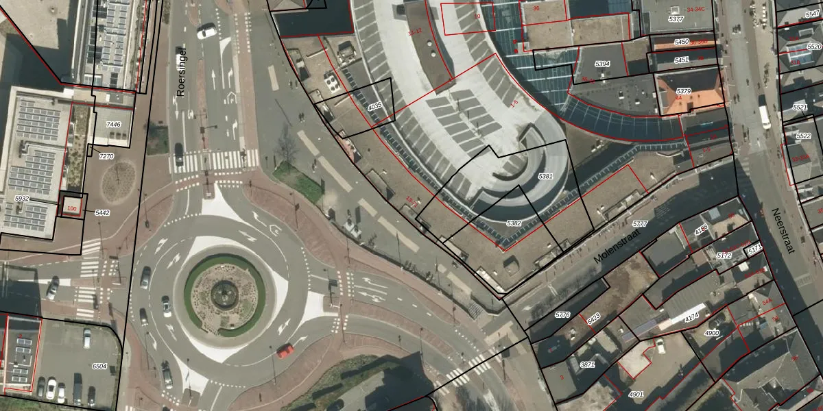 Het perceel waarop Roersingel 65 staat heeft een oppervlakte van 6924 m². Dit is een zeer groot perceel. De perceeloppervlakte wordt geregistreerd door het Kadaster. Gedetailleerde informatie over de maten van dit perceel kunt u vinden in het rapport Kadastrale kaart met maatvoering van Roersingel 65.