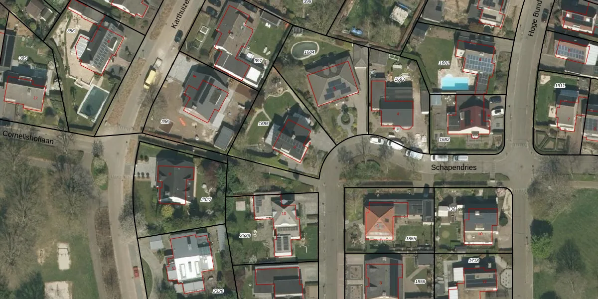 Gebruik de zoekbalk of klik op een perceel voor informatie over de adressen binnen dit perceel.