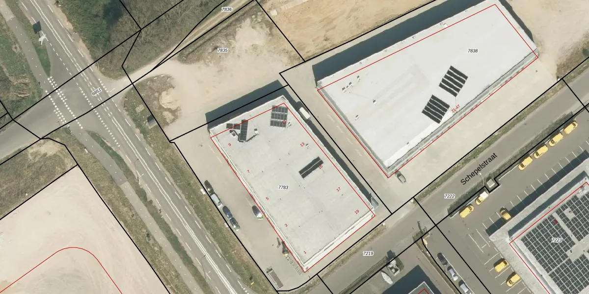 Schepelstraat 13 is gelegen op kadastraal perceel RMD00E7783. Deze kadastrale aanduiding is uniek en wordt gebruikt door het Kadaster om eigendomsrechten en andere zakelijke rechten vast te leggen. Het perceel maakt onderdeel uit van de kadastrale gemeente Roermond.