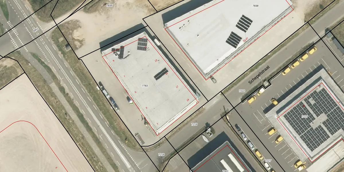 Schepelstraat 17 is gelegen op kadastraal perceel RMD00E7783. Deze kadastrale aanduiding is uniek en wordt gebruikt door het Kadaster om eigendomsrechten en andere zakelijke rechten vast te leggen. Het perceel maakt onderdeel uit van de kadastrale gemeente Roermond.