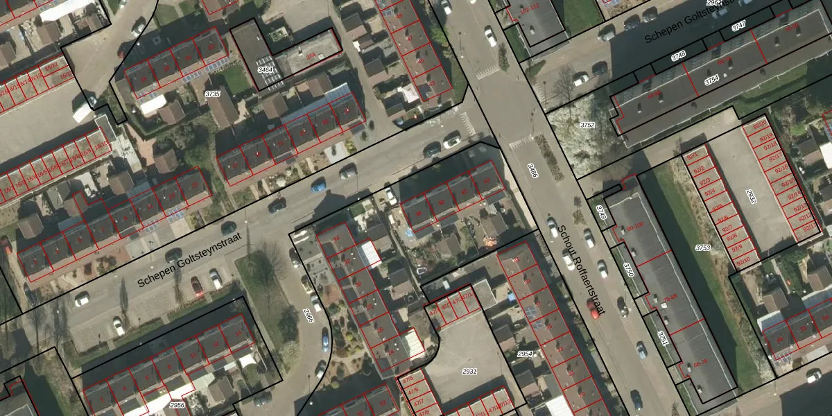 Het perceel waarop Schepen Goltsteynstraat 36 staat heeft een oppervlakte van 4880 m². Dit is een zeer groot perceel. De perceeloppervlakte wordt geregistreerd door het Kadaster. Gedetailleerde informatie over de maten van dit perceel kunt u vinden in het rapport Kadastrale kaart met maatvoering van Schepen Goltsteynstraat 36.