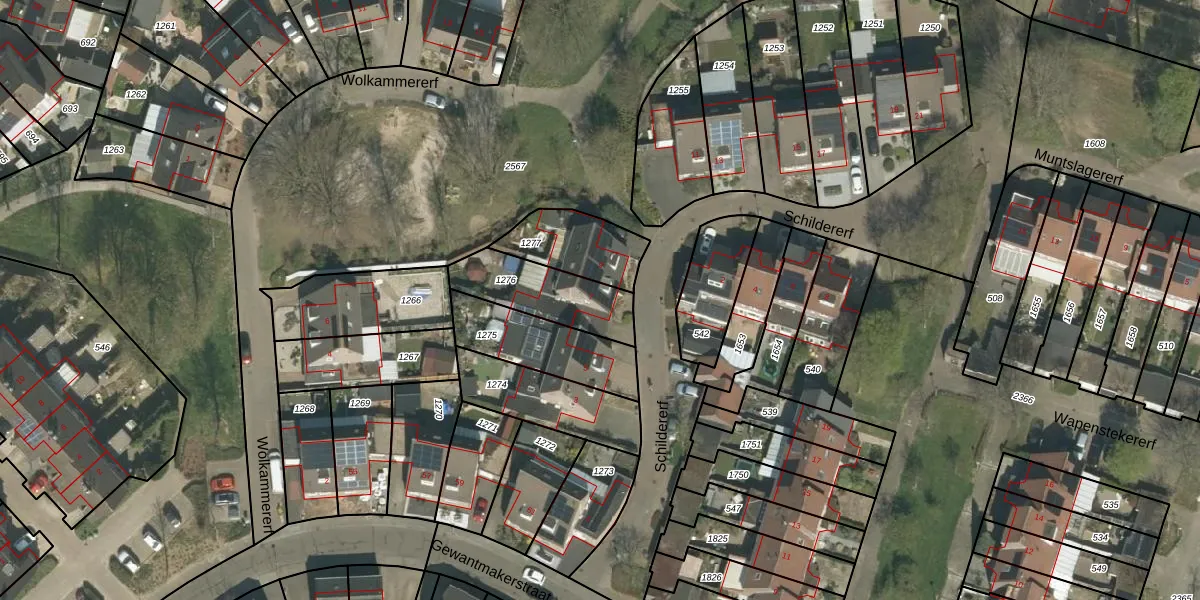 Gebruik de zoekbalk of klik op een perceel voor informatie over de adressen binnen dit perceel.