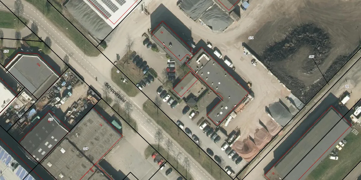 Het perceel waarop Schipperswal 21 staat heeft een oppervlakte van 2,3 ha. Dit is een zeer groot perceel. De perceeloppervlakte wordt geregistreerd door het Kadaster. Gedetailleerde informatie over de maten van dit perceel kunt u vinden in het rapport Kadastrale kaart met maatvoering van Schipperswal 21.