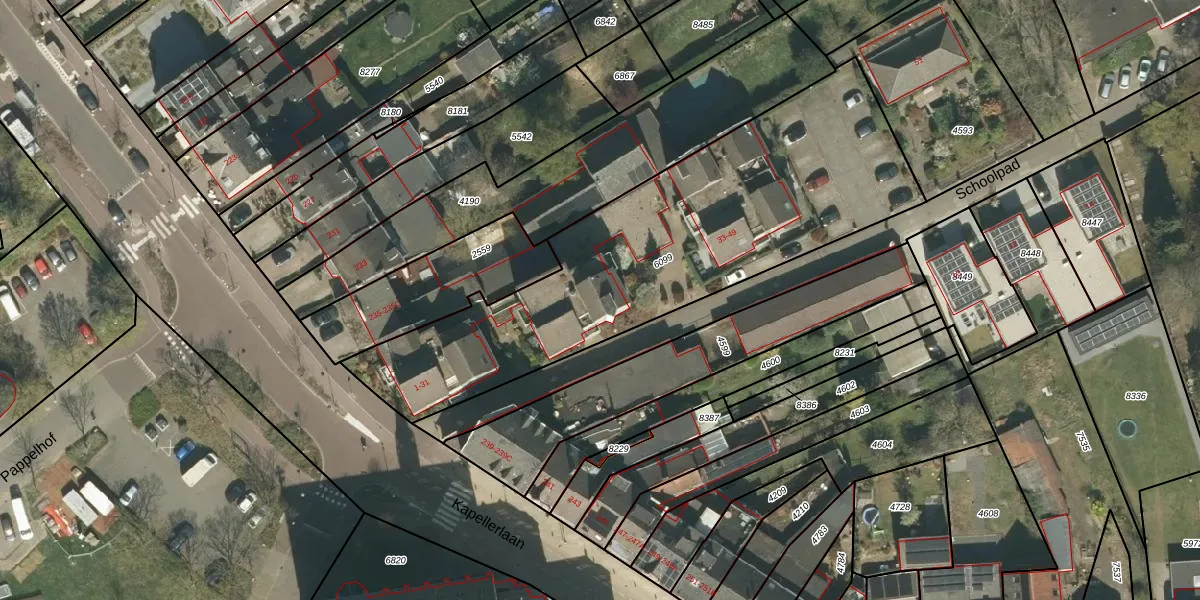 Het perceel waarop Schoolpad 27 staat heeft een oppervlakte van 1895 m². Dit is een zeer groot perceel. De perceeloppervlakte wordt geregistreerd door het Kadaster. Gedetailleerde informatie over de maten van dit perceel kunt u vinden in het rapport Kadastrale kaart met maatvoering van Schoolpad 27.