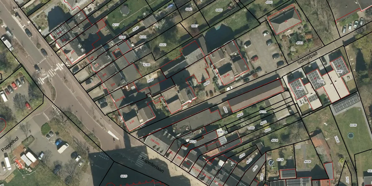 Het perceel waarop Schoolpad 31 staat heeft een oppervlakte van 1895 m². Dit is een zeer groot perceel. De perceeloppervlakte wordt geregistreerd door het Kadaster. Gedetailleerde informatie over de maten van dit perceel kunt u vinden in het rapport Kadastrale kaart met maatvoering van Schoolpad 31.