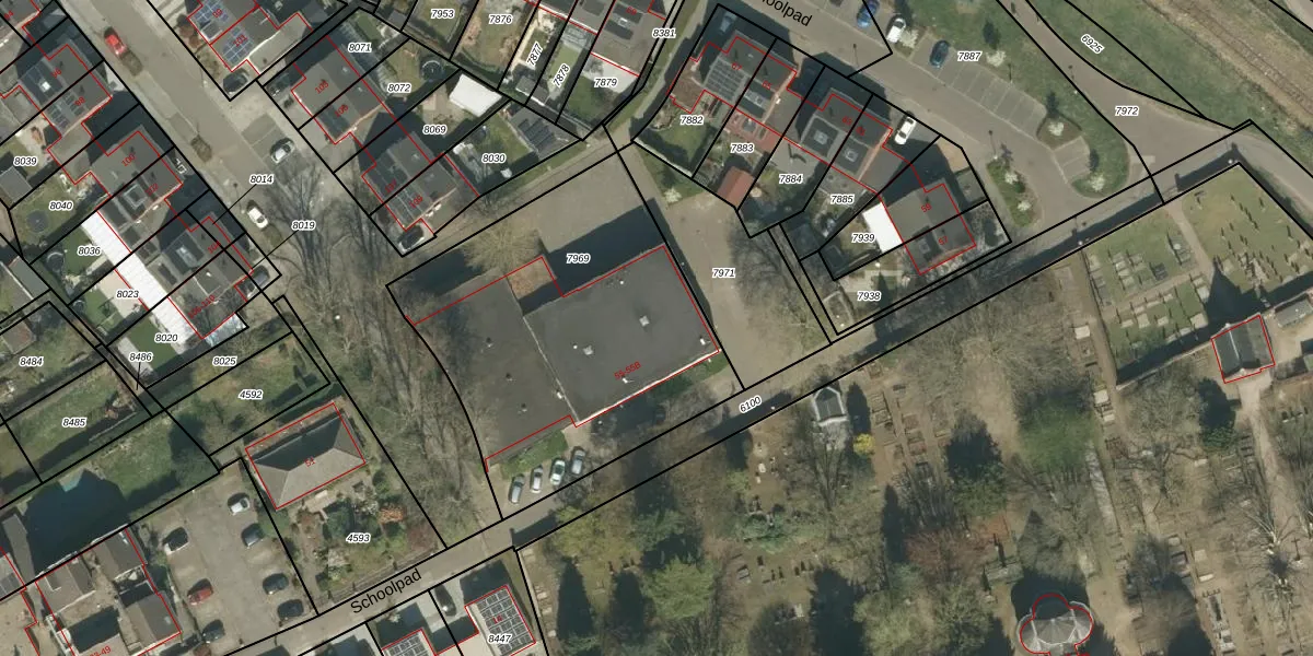 Het perceel waarop Schoolpad 55-A staat heeft een oppervlakte van 1625 m². Dit is een zeer groot perceel. De perceeloppervlakte wordt geregistreerd door het Kadaster. Gedetailleerde informatie over de maten van dit perceel kunt u vinden in het rapport Kadastrale kaart met maatvoering van Schoolpad 55-A.