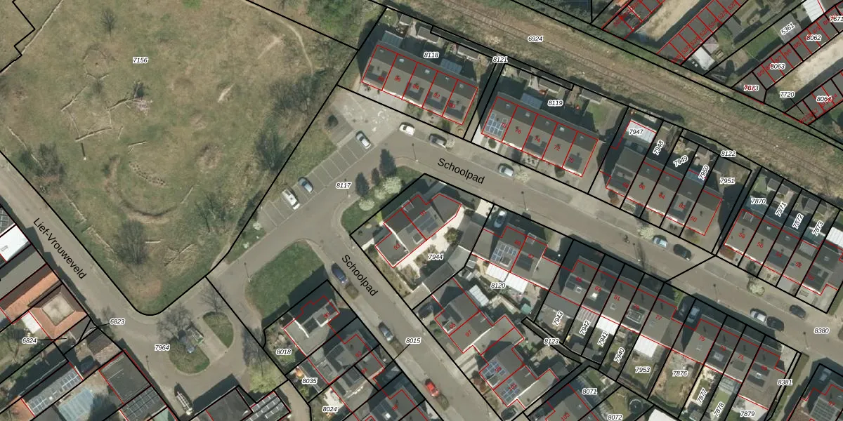 Het perceel waarop Schoolpad 91 staat heeft een oppervlakte van 603 m². Dit is een groot perceel. De perceeloppervlakte wordt geregistreerd door het Kadaster. Gedetailleerde informatie over de maten van dit perceel kunt u vinden in het rapport Kadastrale kaart met maatvoering van Schoolpad 91.