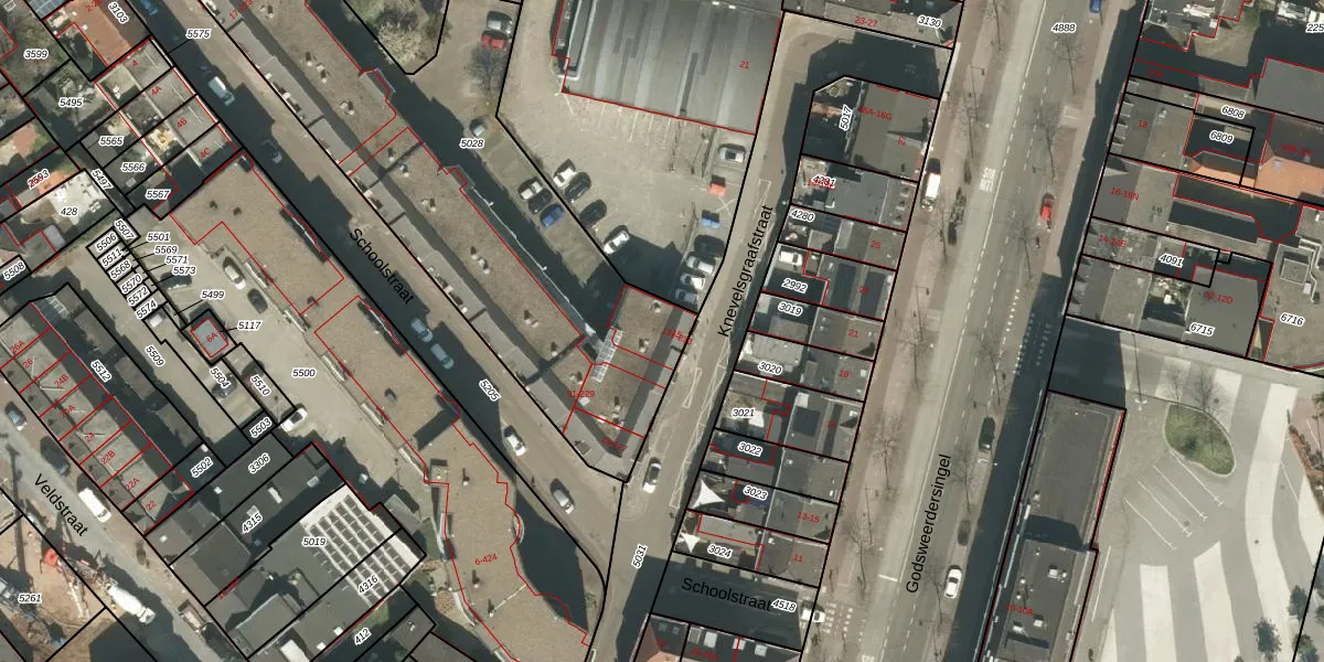 Schoolstraat 133 is gelegen op kadastraal perceel RMD00D5028. Deze kadastrale aanduiding is uniek en wordt gebruikt door het Kadaster om eigendomsrechten en andere zakelijke rechten vast te leggen. Het perceel maakt onderdeel uit van de kadastrale gemeente Roermond.