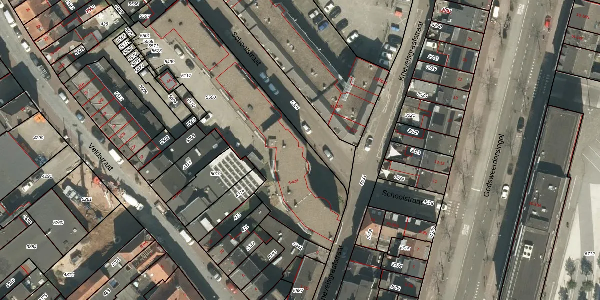 Schoolstraat 16 is gelegen op kadastraal perceel RMD00D5500. Deze kadastrale aanduiding is uniek en wordt gebruikt door het Kadaster om eigendomsrechten en andere zakelijke rechten vast te leggen. Het perceel maakt onderdeel uit van de kadastrale gemeente Roermond.