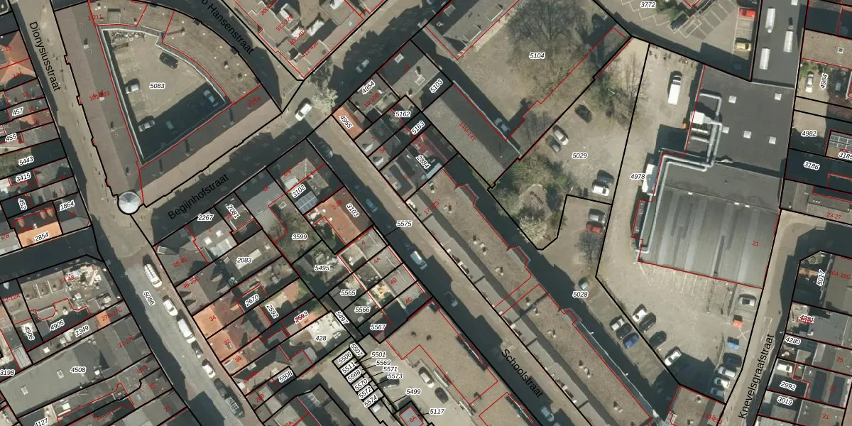 Schoolstraat 17 is gelegen op kadastraal perceel RMD00D5028. Deze kadastrale aanduiding is uniek en wordt gebruikt door het Kadaster om eigendomsrechten en andere zakelijke rechten vast te leggen. Het perceel maakt onderdeel uit van de kadastrale gemeente Roermond.