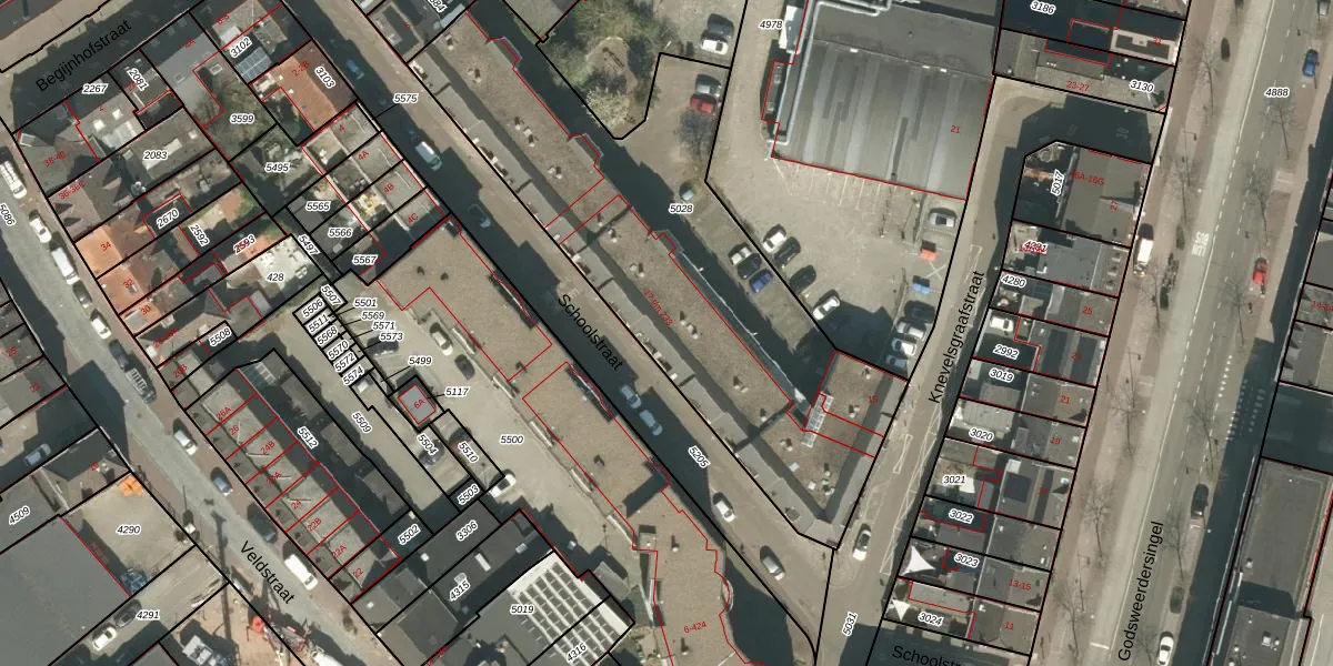 Schoolstraat 215 is gelegen op kadastraal perceel RMD00D5028. Deze kadastrale aanduiding is uniek en wordt gebruikt door het Kadaster om eigendomsrechten en andere zakelijke rechten vast te leggen. Het perceel maakt onderdeel uit van de kadastrale gemeente Roermond.