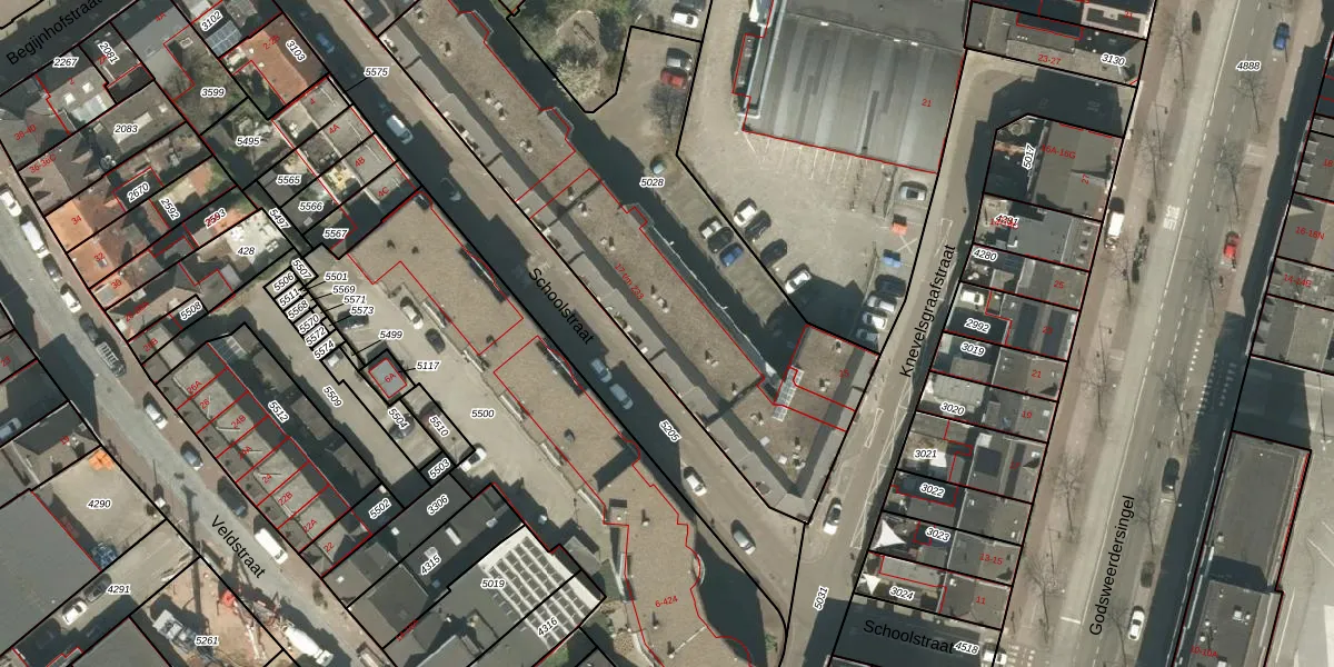 Schoolstraat 217 is gelegen op kadastraal perceel RMD00D5028. Deze kadastrale aanduiding is uniek en wordt gebruikt door het Kadaster om eigendomsrechten en andere zakelijke rechten vast te leggen. Het perceel maakt onderdeel uit van de kadastrale gemeente Roermond.