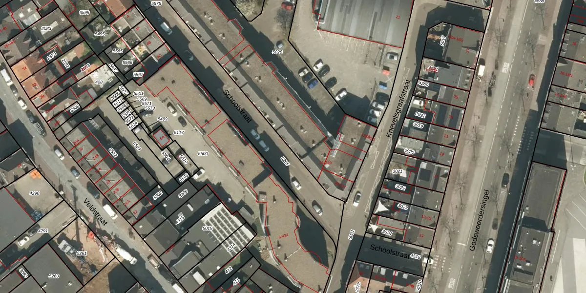 Schoolstraat 27 is gelegen op kadastraal perceel RMD00D5028. Deze kadastrale aanduiding is uniek en wordt gebruikt door het Kadaster om eigendomsrechten en andere zakelijke rechten vast te leggen. Het perceel maakt onderdeel uit van de kadastrale gemeente Roermond.
