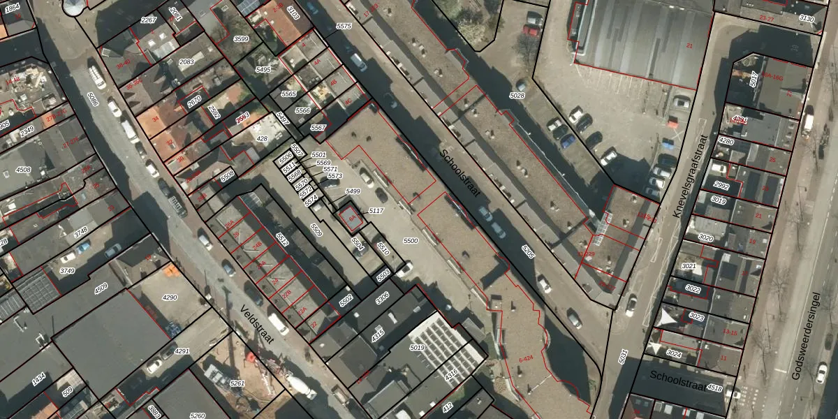Schoolstraat 310 is gelegen op kadastraal perceel RMD00D5500. Deze kadastrale aanduiding is uniek en wordt gebruikt door het Kadaster om eigendomsrechten en andere zakelijke rechten vast te leggen. Het perceel maakt onderdeel uit van de kadastrale gemeente Roermond.