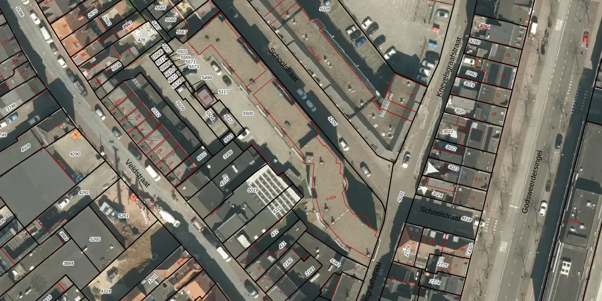 Schoolstraat 316 is gelegen op kadastraal perceel RMD00D5500. Deze kadastrale aanduiding is uniek en wordt gebruikt door het Kadaster om eigendomsrechten en andere zakelijke rechten vast te leggen. Het perceel maakt onderdeel uit van de kadastrale gemeente Roermond.