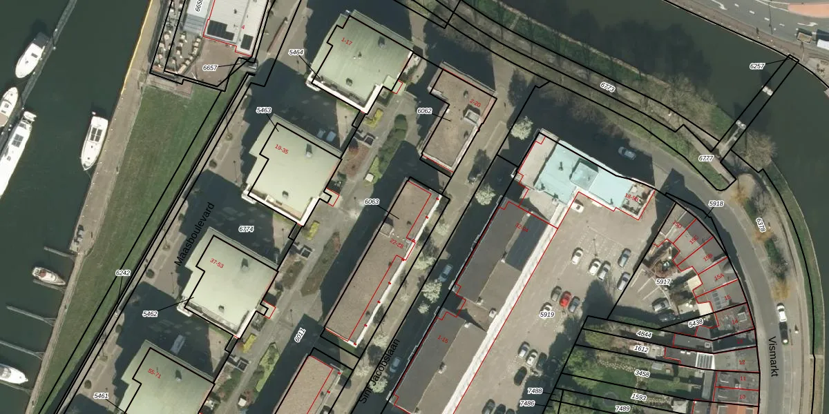 Sint Jacobslaan 34 is gelegen op kadastraal perceel RMD00C6063. Deze kadastrale aanduiding is uniek en wordt gebruikt door het Kadaster om eigendomsrechten en andere zakelijke rechten vast te leggen. Het perceel maakt onderdeel uit van de kadastrale gemeente Roermond.