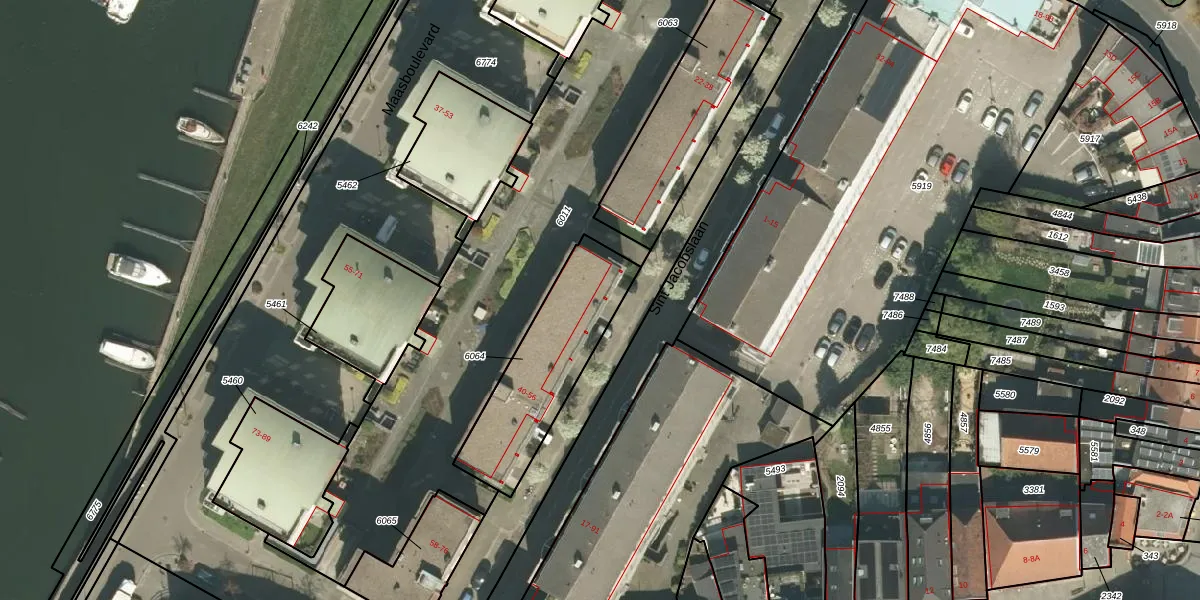 Sint Jacobslaan 40 is gelegen op kadastraal perceel RMD00C6064. Deze kadastrale aanduiding is uniek en wordt gebruikt door het Kadaster om eigendomsrechten en andere zakelijke rechten vast te leggen. Het perceel maakt onderdeel uit van de kadastrale gemeente Roermond.