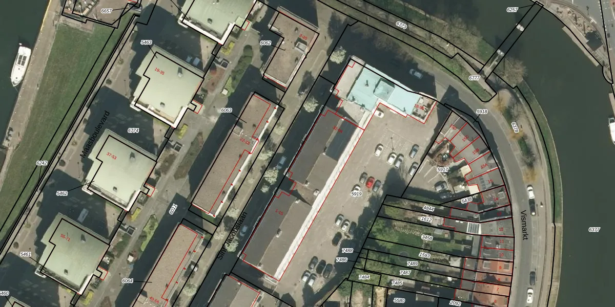 Sint Jacobslaan 5 is gelegen op kadastraal perceel RMD00C5919. Deze kadastrale aanduiding is uniek en wordt gebruikt door het Kadaster om eigendomsrechten en andere zakelijke rechten vast te leggen. Het perceel maakt onderdeel uit van de kadastrale gemeente Roermond.
